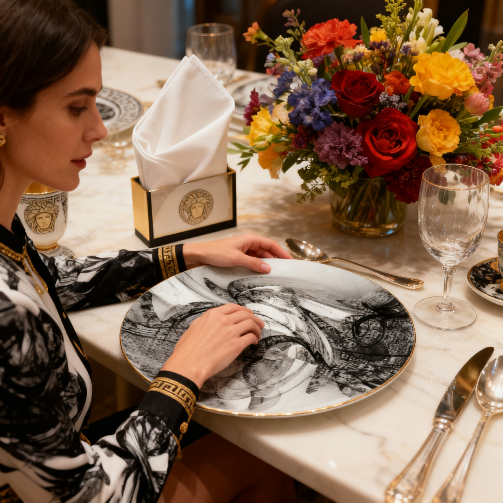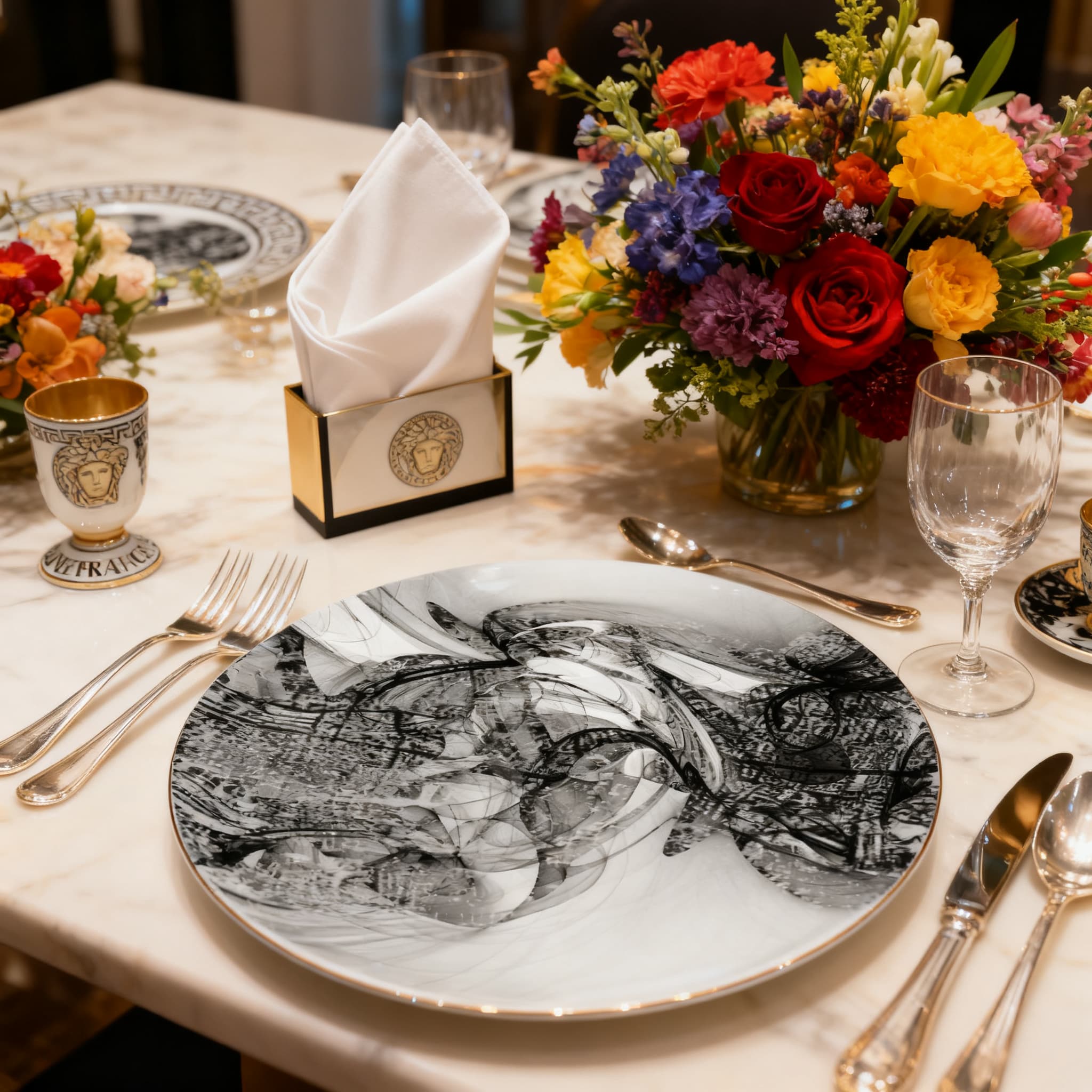 סט צלחות מצויר - סט צלחות יוקרתי- מקולקציית נשים לעיצוב שולחן ולאירוח בחגים ובשבת -פלייט₪ 145