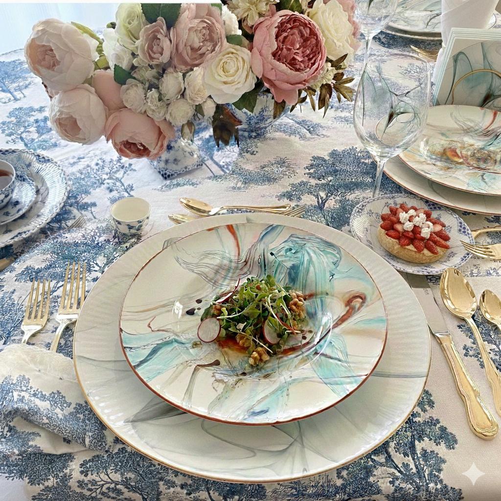 סט צלחות מפורצלן איכותי יוקרתי לעיצוב שולחן , מערכת אוכל שלימה לעיצוב שולחן דגם תה לאב איב₪ 130.5 ₪ 145 (10% Off)