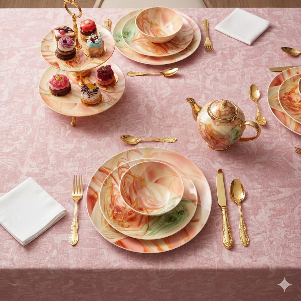 סט צלחות מפורצלן איכותי יוקרתי לעיצוב שולחן , מערכת אוכל שלימה לעיצוב שולחן דגם תה לאב איב₪ 130.5 ₪ 145 (10% Off)