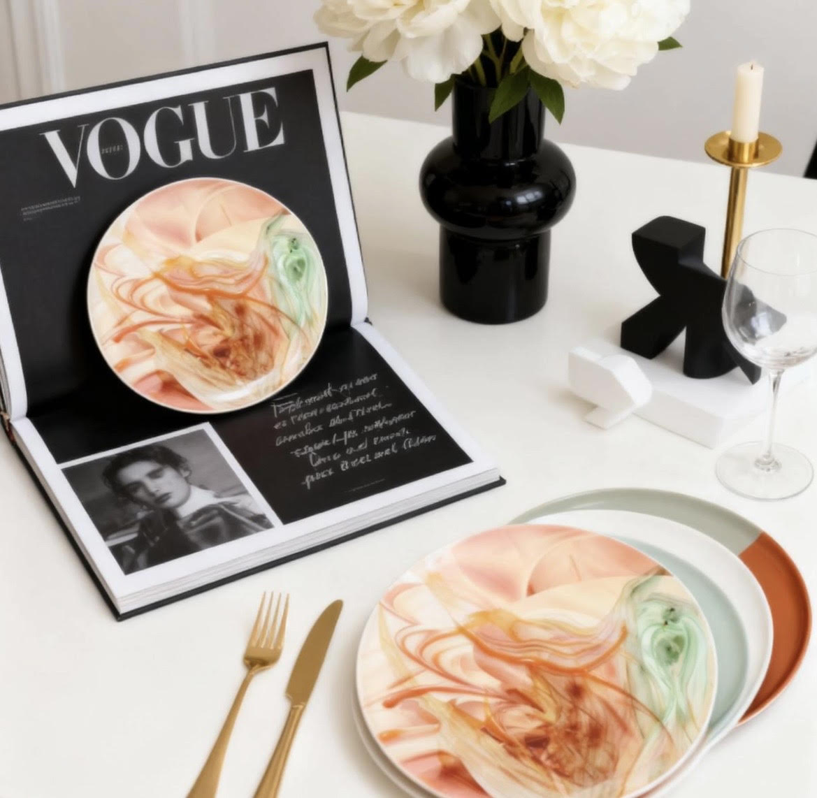 סט צלחות מצויר - סט צלחות יוקרתי- מקולקציית נשים לעיצוב שולחן ולאירוח בחגים ובשבת -פלייט₪ 145